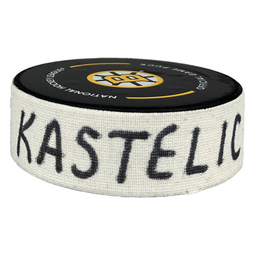 Game-Used Mark Kastelic Goal Puck (SH) - vs. Kraken (Chara Jersey Retirement Night) - 1/15/2025