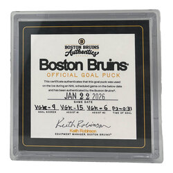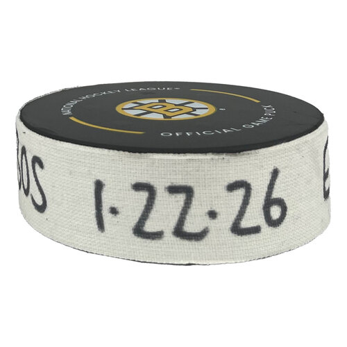 Game-Used Official Game Puck used during the game on 1/22/2026 vs. Vegas Golden Knights. Golden Knights goal scored by Jack Eichel. Assisted by Noah Hanifin & Kaeden Korczak.