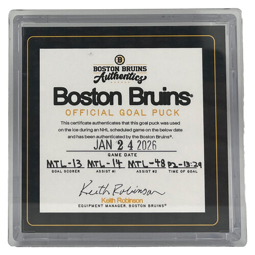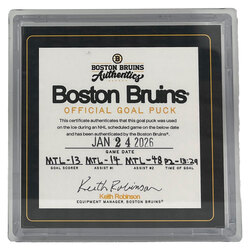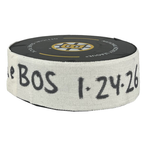 Game-Used Official Game Puck used during the game on 1/24/2026 vs. Montreal Canadiens. Canadiens Goal goal scored by Cole Caufield, his 3rd of the game. Assisted by Nick Suzuki & Lane Hutson.